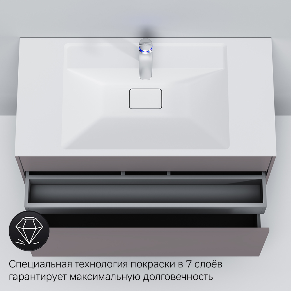 Мебель Inspire V2.0 – идеальный выбор для тех кто привык к динамичному стилю жизни ценит абсолютный комфорт и минимализм в интерьере. Вариативность размеров и цветов дает неограниченные возможности для создания стильного дизайна ванной комнаты с учетом ее планировки и индивидуальных предпочтений владельца Ультратонкая раковина эргономичной формы с покрытием из мрамора идеально сочетается с мебельной базой Инновационный подход к хранению: мы разработали дополнительный ящик который выдвигается на 12 см и обеспечивает быстрый доступ к самым необходимым вещам Экологически чистые и долговечные полиакриловые эмали: специальная технология покраски в 7 слоев превосходит технологию нанесения автоэмали у ведущих немецких марок и обеспечивает насыщенный цвет в течение всего срока службы. Теперь в самых актуальных матовых оттенках