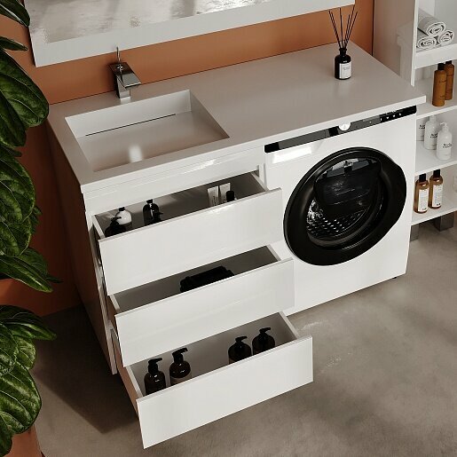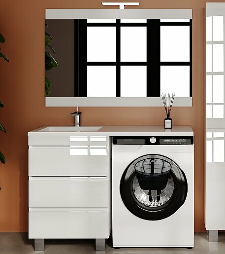 Тумба под стиральную машину Style Line Даллас 120 Люкс белая PLUS ЭМАЛЬ