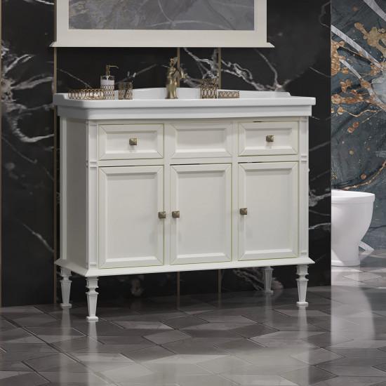 Коллекцию КАНТАРА характеризует филигранная фрезеровка ножек в итальянском стиле и шикарная глубокая керамическая раковина — столешница в размерах 85 или 105 см. Цветовая палитра — белый матовый или слоновая кость. Фурнитура с механизмами плавного закрывания Hettich (Германия). Серия создана по мотивам стилистики известного неприступного античного Византийского замка Кантара.