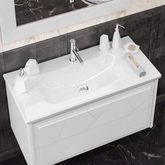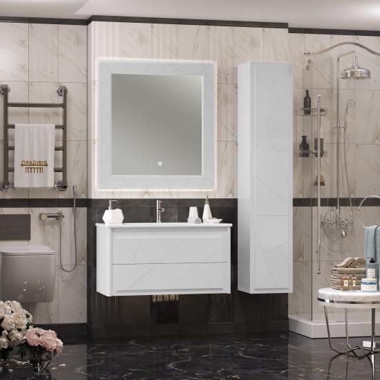Мебель для ванной Opadiris «Луиджи 90» впечатляет эргономичностью и элегантным дизайном. Подвесная мебель в универсальном цветовом решении – отличный выбор для типовой ванной комнаты, так как не загромождает пространство и обеспечивает удобную уборку пола. По периметру зеркала имеется светодиодная подсветка с сенсорным управлением. Тонкая керамическая столешница с глубокой чашей удобна в использовании. Система хранения представлена двумя выдвижными ящиками, верхний из которых организован под раздельное хранение мелких принадлежностей. Современные системы push-to-open обеспечивают открывание ящиков легким нажатием на фасад, немецкие направляющие Hettich поддерживают плавный ход закрывания. Мебель производится из влагостойких и долговечных материалов: корпус и фасад – из прочной МДФ, окрашенной по технологии УФ-отверждения, зеркало – на основе серебряной амальгамы.