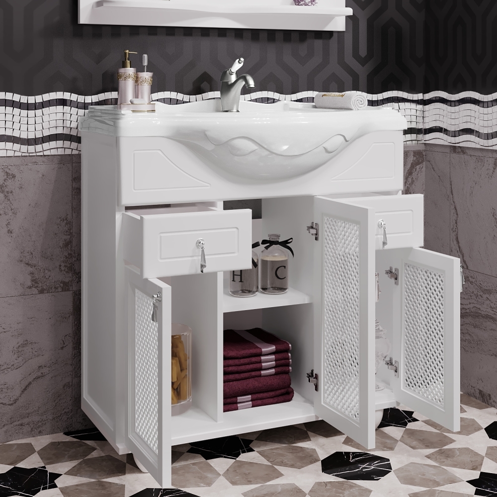 Тумба под раковину Opadiris Тибет 85 с решеткой белый матовый (9003) - цена 44023 руб. Оформить заказ и купить компонент Opadiris Тибет 85 с решеткой белый матовый (9003) в Москве в нашем интернет магазине можно по тел 8 (919) 991-95-00 или добавив товар в корзину.