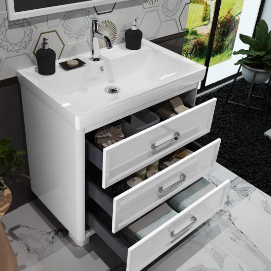 Коллекция ВЕГАС исполнена по канонам американской классики.Массивные детали — увесистые металлические ручки, основательные округлые ножки, глубокая фаянсовая раковина.Ящики с механизмом плавного закрывания Hettich (Германия).Мебель покрыта влагостойкой эмалью.