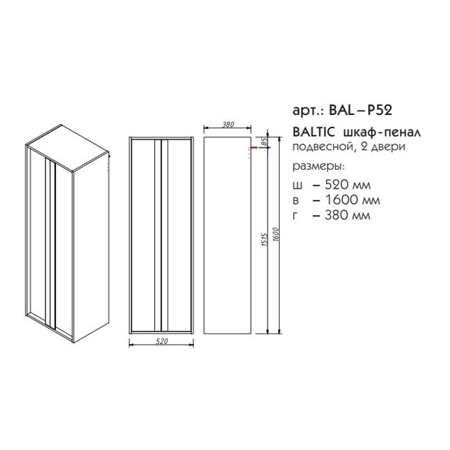 Пенал Caprigo BAL-P52 Baltic подвесной - цена 39500 руб. Оформить заказ и купить компонент Caprigo BAL-P52 Baltic подвесной в Москве в нашем интернет магазине можно по тел 8 (919) 991-95-00 или добавив товар в корзину.