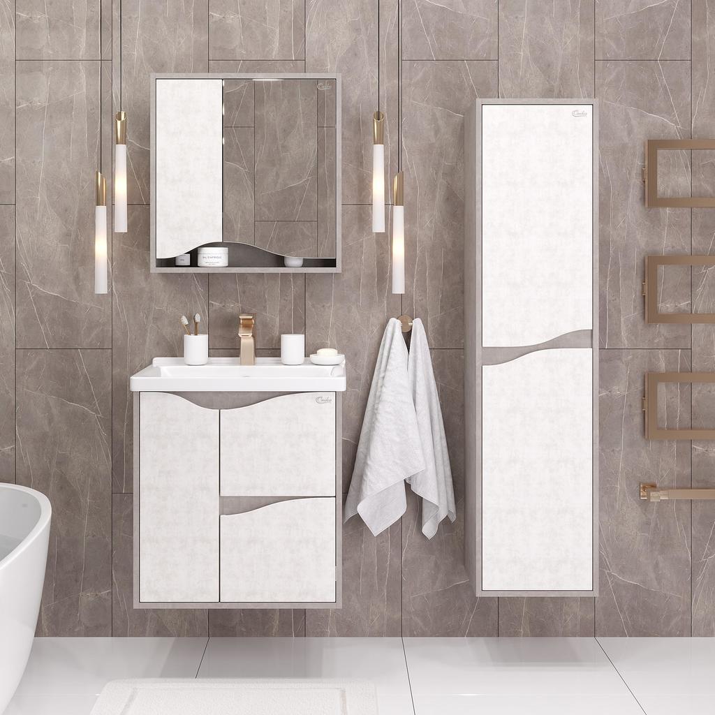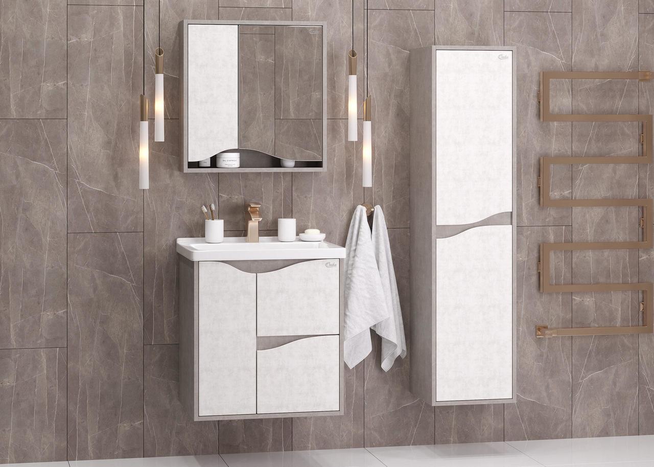 Подвесной пенал Onika БРЕНДОН 35.10 поможет создать особенную атмосферу ванной комнаты: текстуры камня и бетона гармонично дополняют друг-друга, создавая сдержанный выразительный акцент в интерьере.