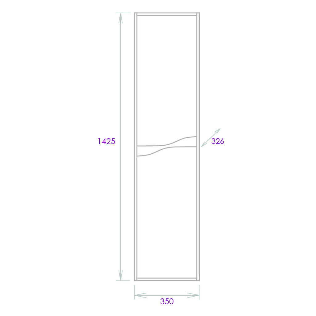 Внутреннее пространство пенала поделено полками на 5 секций разной высоты, что позволяет удобно разместить все необходимые мелочи. Двери снабжены механизмом плавного закрывания. Ручки, изящно интегрированные в фасады, позволяют сделать эксплуатацию мебели более удобной и практичной.