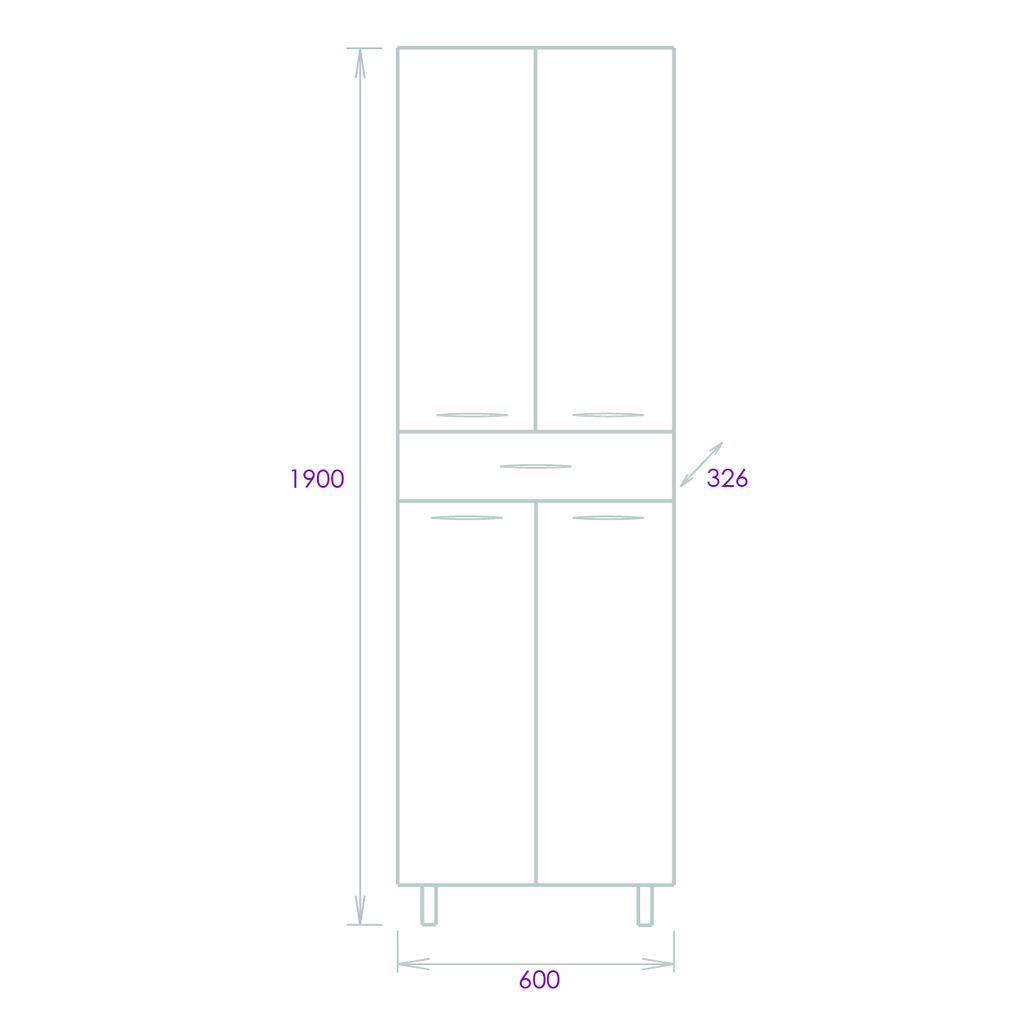 Конструкция пенала предусмотрела огромное пространство для хранения, в котором поместятся все необходимые вещи: большой выдвижной ящик посередине + 4 дверцы, скрывающие полки. Дверцы оснащены механизмом плавного закрывания, а ящик - направляющими полного выдвижения.