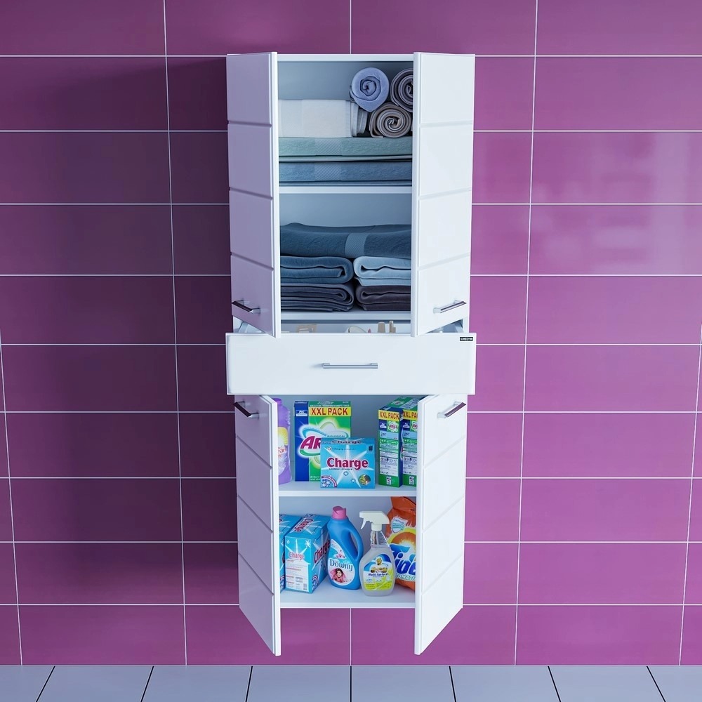 корпус изделия выполнен из влагостойкого ЛДСП, фасад из МДФ и покрыты высокоглянцевой эмалью.