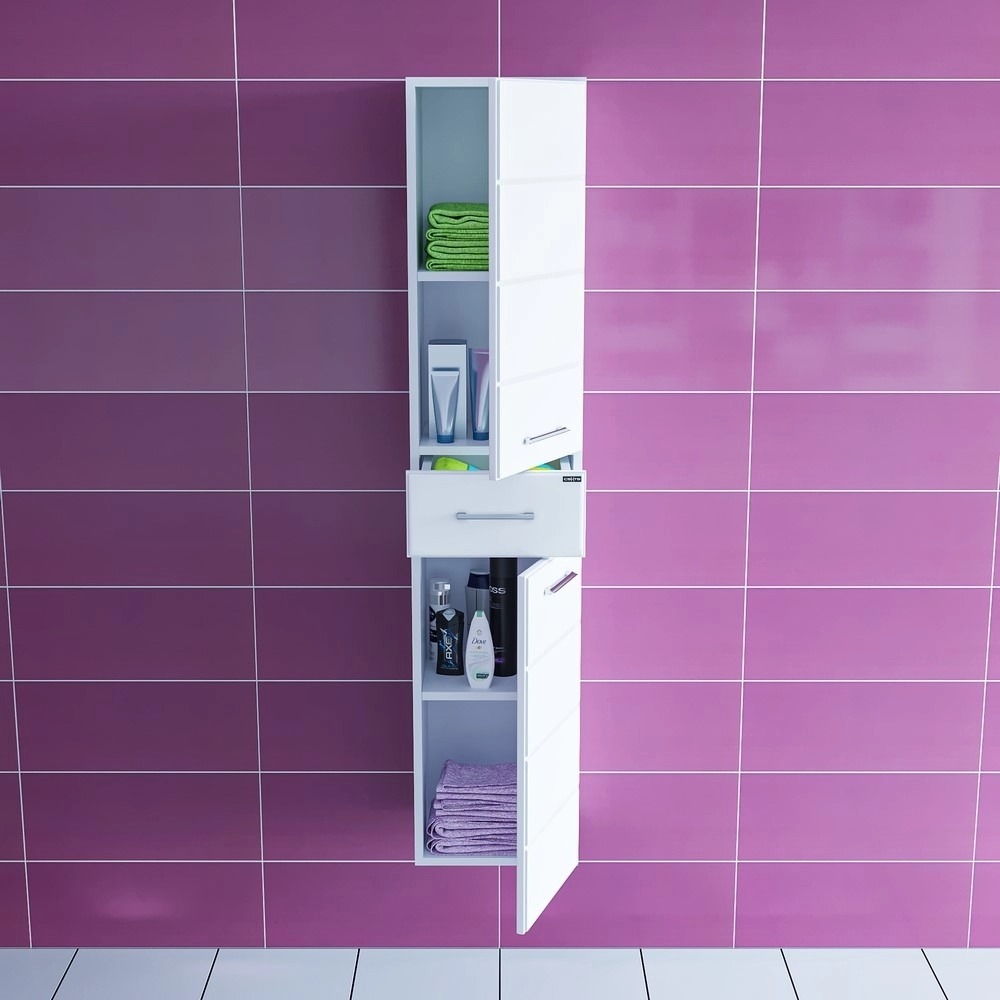 корпус изделия выполнен из влагостойкого ЛДСП, фасад из МДФ и покрыты высокоглянцевой эмалью.