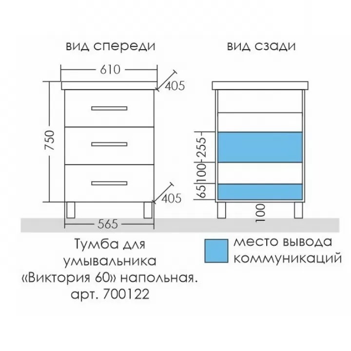 Тумба напольная "Виктория 60" для умывальника "Фостер 60".