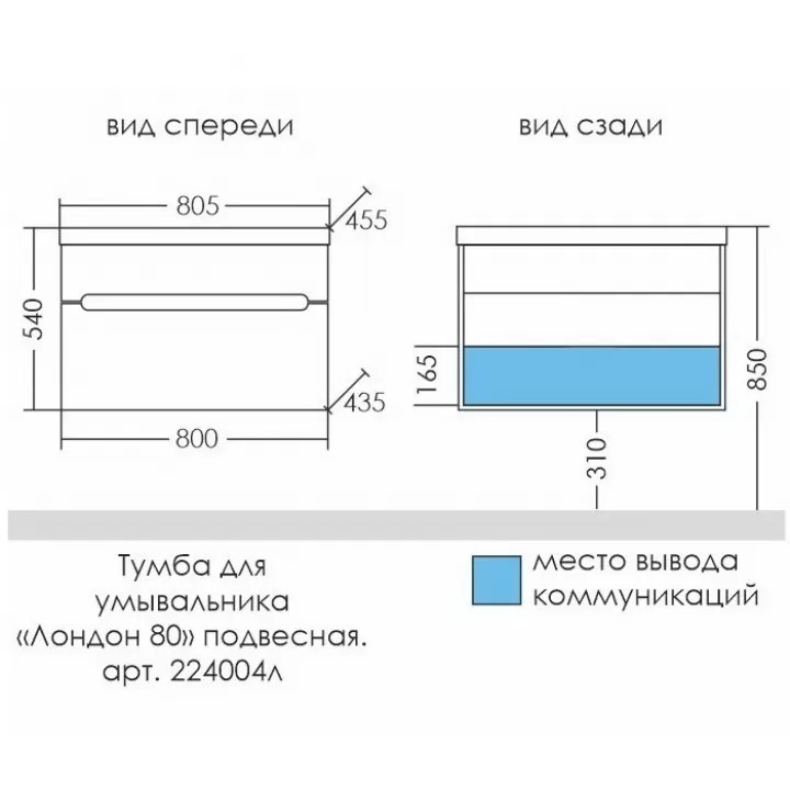 Тумба подвесная "Лондон 80" для умывальника "Classic 80".