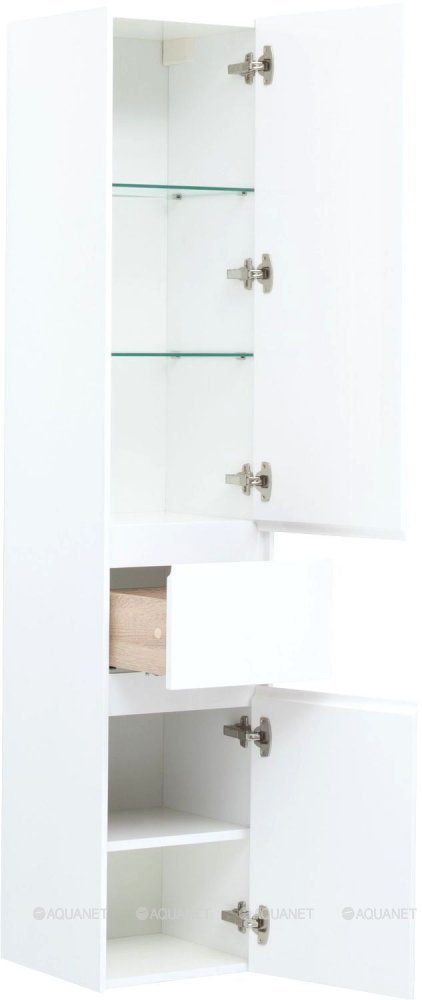 Шкаф-пенал для ванной Aquanet Бруклин 35 белого цвета для подвесной установки Изделие отвечает тенденциям минимализма Аскетизм четких линий и обтекаемых форм в ней доведен до совершенства.