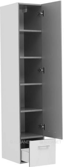 В верхней части пенала расположено большое отделение с распашной дверцей, снизу предусмотрен компактный выдвижной ящик.