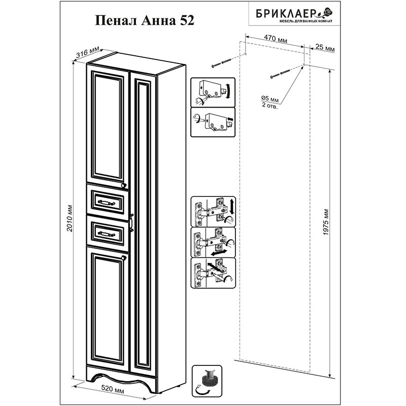 Шкаф пенал Бриклаер Анна 52 б/к белый - цена 27000 руб. Оформить заказ и купить компонент Бриклаер Анна 52 б/к белый в Москве в нашем интернет магазине можно по тел 8 (919) 991-95-00 или добавив товар в корзину.
