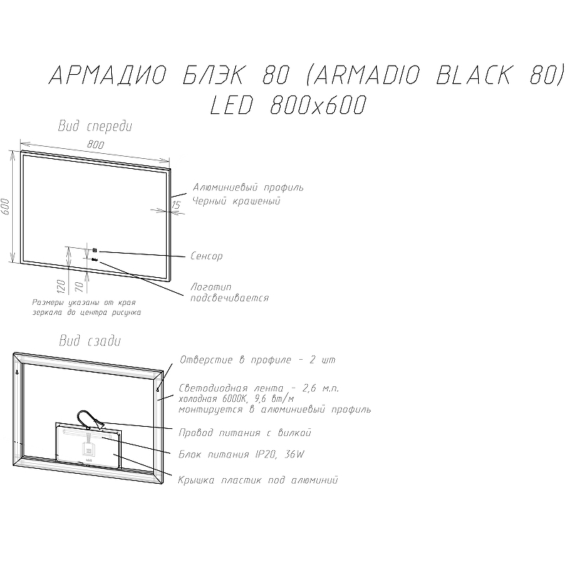 Зеркало ARMADIO BLACK 80, 800х600 с подсветкой.