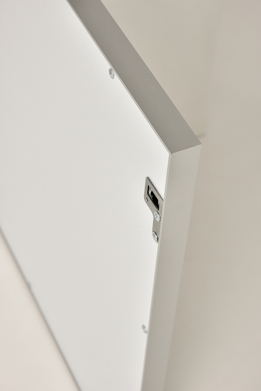 LED подсветка, алюминиевый профиль, сенсорный выключатель, блок питания, крепление зеркала (кронштейн с крюком), клеммник, сетевой шнур. Материал корпуса - Анодированный алюминий (профиль), задняя стенка пластик (АБС).