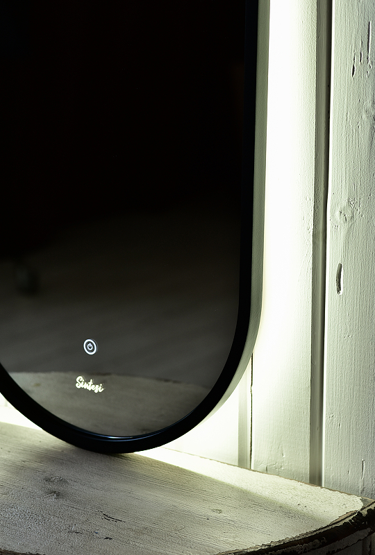 Зеркало для ванной комнаты с ореольной LED подсветкой и сенсорным выключателем. Потребляемая мощность 25 W. Класс защиты IP44.