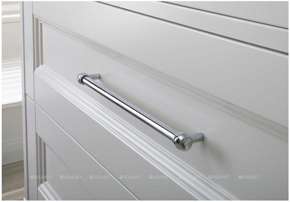 Она выполнена из натуральной древесины, что является редкостью для российской продукции сегмента мебели для ванной, и это выделяет линейку мебели не только из популярной у покупателей коллекции мебели для ванной комнаты «Бостон», но и в целом из всего ассортимента продукции Aquanet.