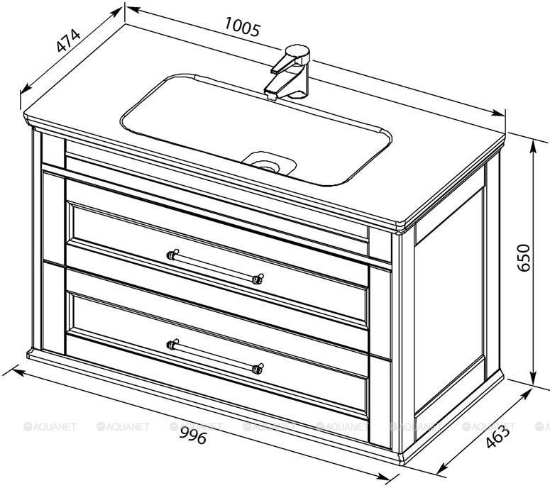 Тумба под раковину Aquanet Верона 100 с 2 ящиками, белая (175382)