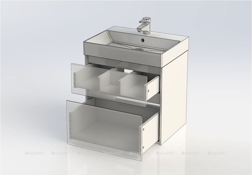 Тумба Aquanet Бруклин 60 белого цвета предназначена для подвесной установки.