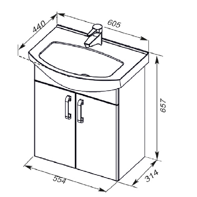 тумба под раковину, габариты: 55x 66x 31см, корпус белый