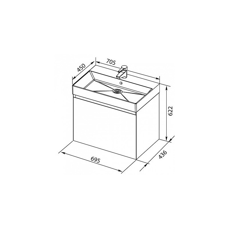 раковина под тумбу, габариты: 71x 90x 45см, раковина белый