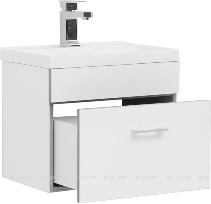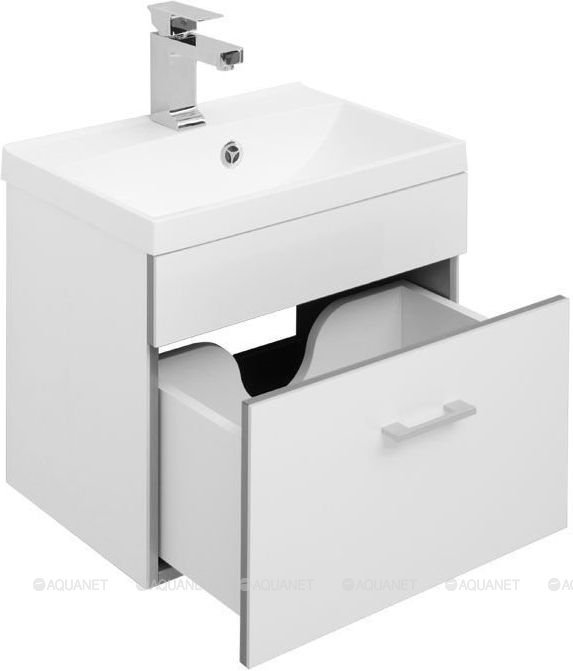 Тумба с раковиной Aquanet Верона 50 (подвесная, 1 ящик) белого цвета с отделкой из качественного акрила.
