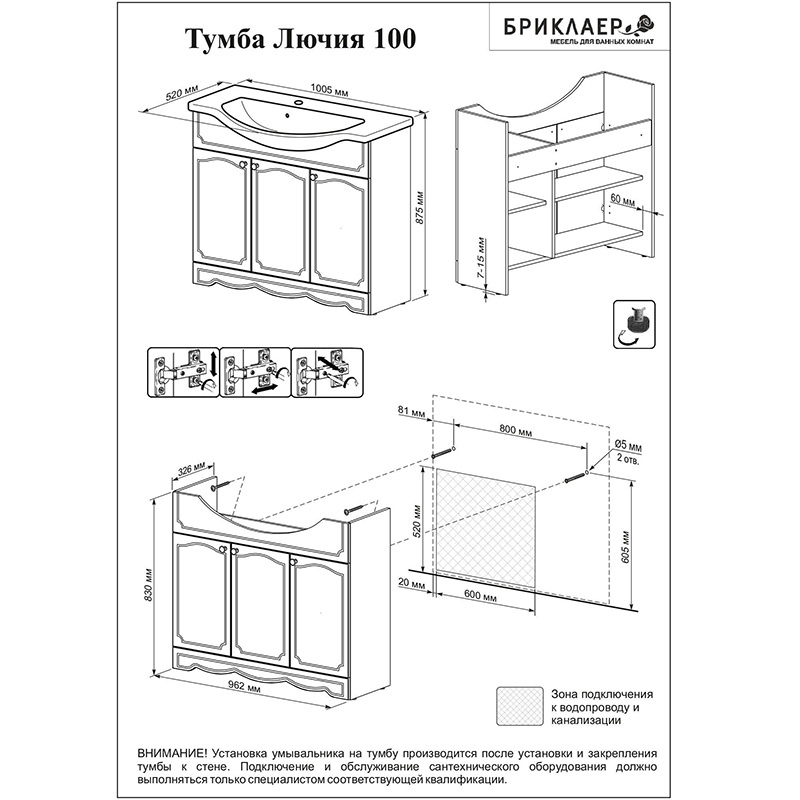 Тумба под раковину Бриклаер Лючия 100 белая - цена 22650 руб. Оформить заказ и купить компонент Бриклаер Лючия 100 белая в Москве в нашем интернет магазине можно по тел 8 (919) 991-95-00 или добавив товар в корзину.