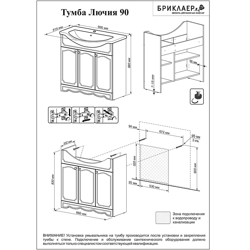 Тумба под раковину Бриклаер Лючия 90 белая - цена 9800 руб. Оформить заказ и купить компонент Бриклаер Лючия 90 белая в Москве в нашем интернет магазине можно по тел 8 (919) 991-95-00 или добавив товар в корзину.