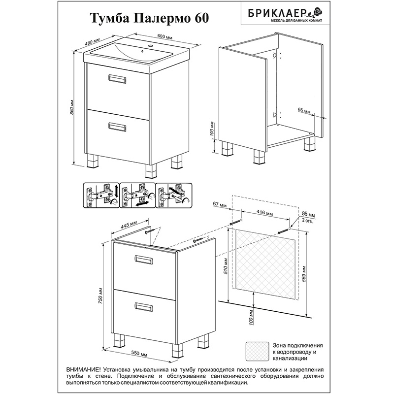 Тумба под раковину Бриклаер Палермо 60 белая - цена 13529 руб. Оформить заказ и купить компонент Бриклаер Палермо 60 белая в Москве в нашем интернет магазине можно по тел 8 (919) 991-95-00 или добавив товар в корзину.