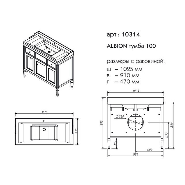Тумба под раковину Caprigo 10314 Albion 100 см - цена 148890 руб. Оформить заказ и купить компонент Caprigo 10314 Albion 100 см в Москве в нашем интернет магазине можно по тел 8 (919) 991-95-00 или добавив товар в корзину.