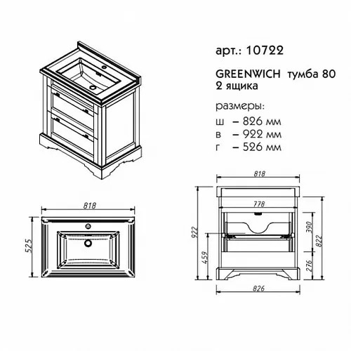 Тумба под раковину Caprigo 10722 Greenwich 80 см - цена 86610 руб. Оформить заказ и купить компонент Caprigo 10722 Greenwich 80 см в Москве в нашем интернет магазине можно по тел 8 (919) 991-95-00 или добавив товар в корзину.