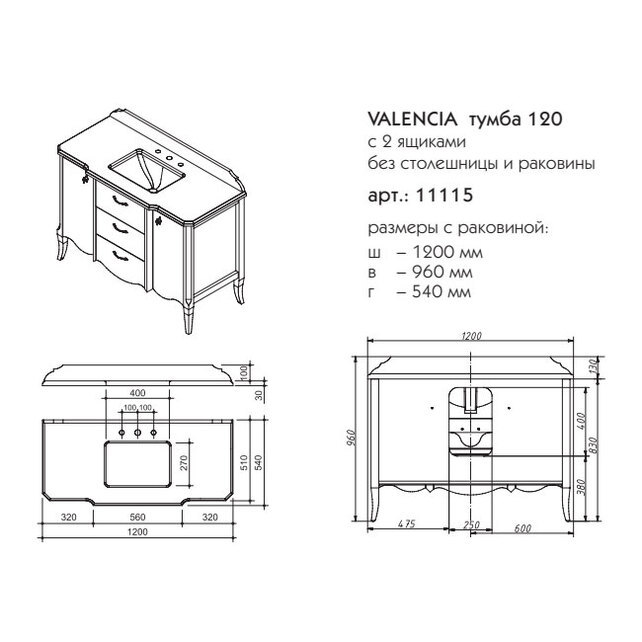 Тумба под раковину Caprigo 11115 Valencia 120 см - цена 130580 руб. Оформить заказ и купить компонент Caprigo 11115 Valencia 120 см в Москве в нашем интернет магазине можно по тел 8 (919) 991-95-00 или добавив товар в корзину.
