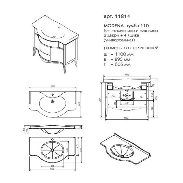 Тумба под раковину Caprigo 11814 Modena 110 см - цена 171080 руб. Оформить заказ и купить компонент Caprigo 11814 Modena 110 см в Москве в нашем интернет магазине можно по тел 8 (919) 991-95-00 или добавив товар в корзину.