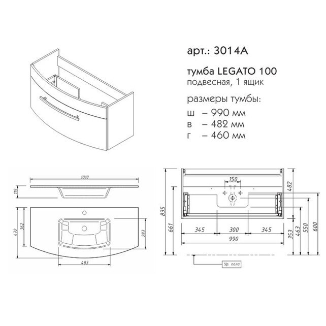 Тумба под раковину Caprigo 3014A Legato 100 см подвесная - цена 43090 руб. Оформить заказ и купить компонент Caprigo 3014A Legato 100 см подвесная в Москве в нашем интернет магазине можно по тел 8 (919) 991-95-00 или добавив товар в корзину.