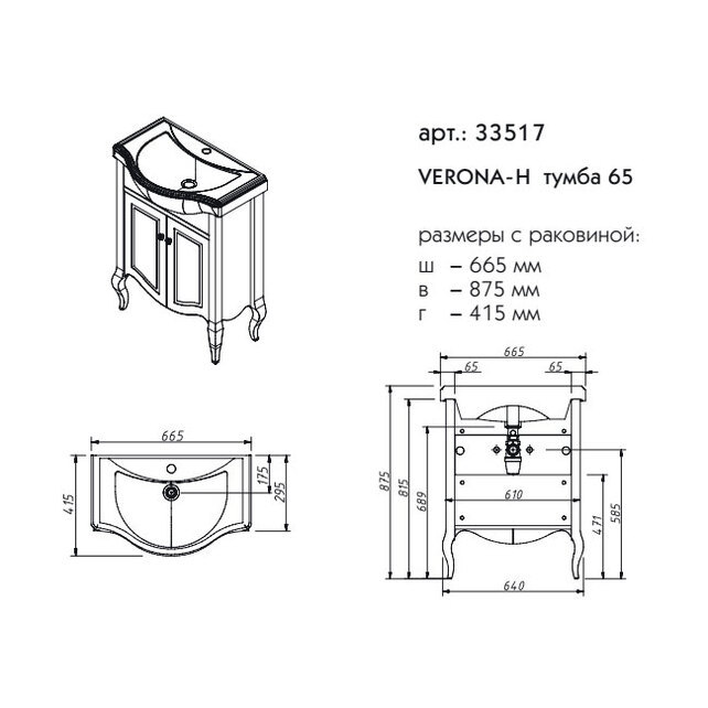 Тумба под раковину Caprigo 33517 Verona 65 см - цена 33540 руб. Оформить заказ и купить компонент Caprigo 33517 Verona 65 см в Москве в нашем интернет магазине можно по тел 8 (919) 991-95-00 или добавив товар в корзину.