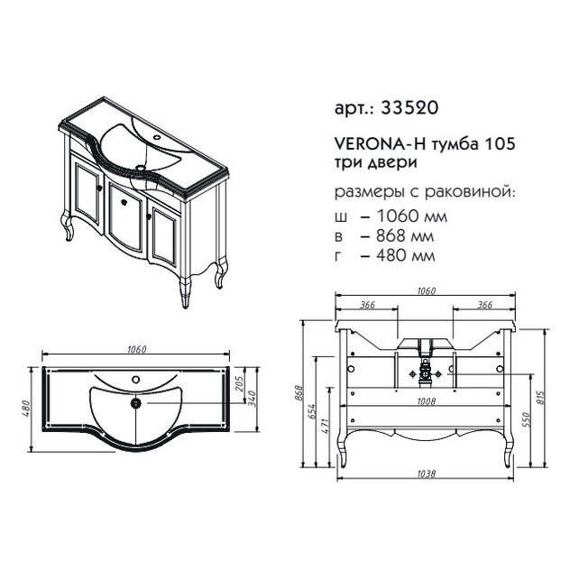Тумба под раковину Caprigo 33520 Verona 105 см - цена 43420 руб. Оформить заказ и купить компонент Caprigo 33520 Verona 105 см в Москве в нашем интернет магазине можно по тел 8 (919) 991-95-00 или добавив товар в корзину.