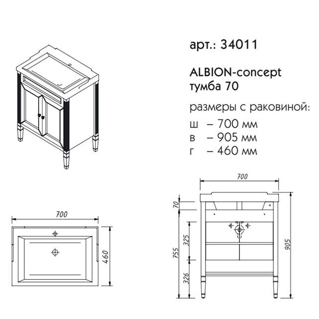 Тумба под раковину Caprigo 34011 Albion 70 см - цена 32300 руб. Оформить заказ и купить компонент Caprigo 34011 Albion 70 см в Москве в нашем интернет магазине можно по тел 8 (919) 991-95-00 или добавив товар в корзину.