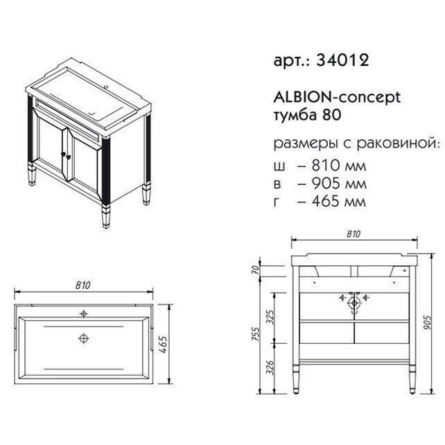 Тумба под раковину Caprigo 34012 Albion 80 см - цена 33540 руб. Оформить заказ и купить компонент Caprigo 34012 Albion 80 см в Москве в нашем интернет магазине можно по тел 8 (919) 991-95-00 или добавив товар в корзину.