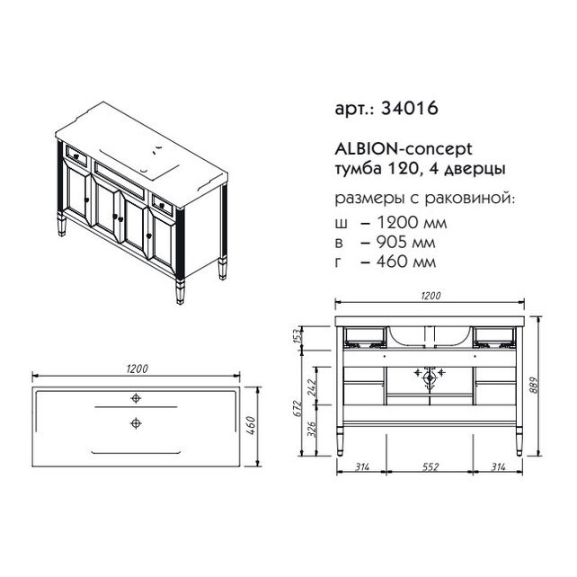 Тумба под раковину Caprigo 34016 Albion 120 см - цена 61940 руб. Оформить заказ и купить компонент Caprigo 34016 Albion 120 см в Москве в нашем интернет магазине можно по тел 8 (919) 991-95-00 или добавив товар в корзину.