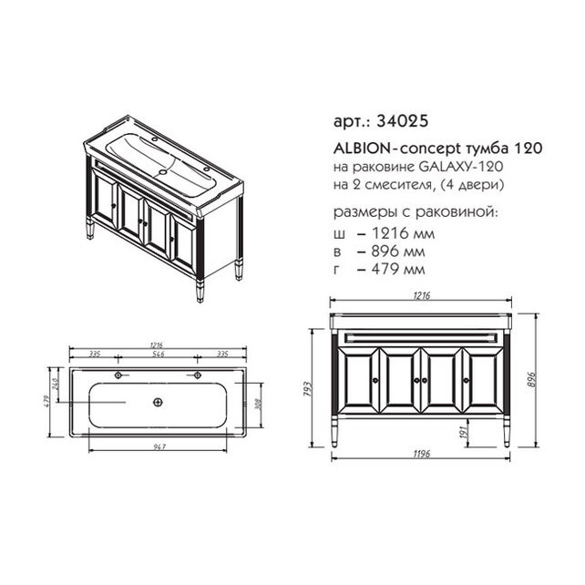 Тумба под раковину Caprigo 34025 Albion 120 см - цена 46360 руб. Оформить заказ и купить компонент Caprigo 34025 Albion 120 см в Москве в нашем интернет магазине можно по тел 8 (919) 991-95-00 или добавив товар в корзину.