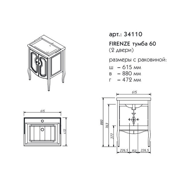 Тумба под раковину Caprigo 34110 Firenze 60 см - цена 34260 руб. Оформить заказ и купить компонент Caprigo 34110 Firenze 60 см в Москве в нашем интернет магазине можно по тел 8 (919) 991-95-00 или добавив товар в корзину.