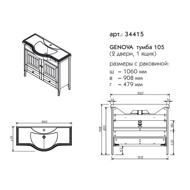 Тумба под раковину Caprigo 34415 Genova 105 см - цена 41900 руб. Оформить заказ и купить компонент Caprigo 34415 Genova 105 см в Москве в нашем интернет магазине можно по тел 8 (919) 991-95-00 или добавив товар в корзину.