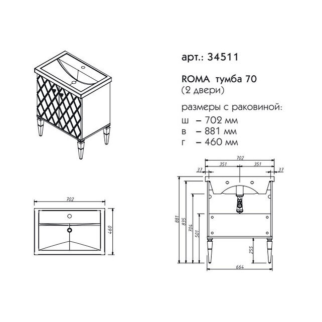 Тумба под раковину Caprigo 34511 Roma 70 см - цена 23870 руб. Оформить заказ и купить компонент Caprigo 34511 Roma 70 см в Москве в нашем интернет магазине можно по тел 8 (919) 991-95-00 или добавив товар в корзину.