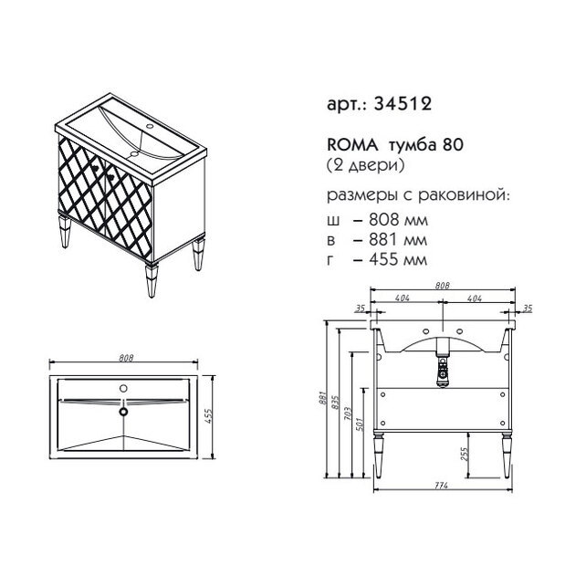 Тумба под раковину Caprigo 34512 Roma 80 см - цена 25980 руб. Оформить заказ и купить компонент Caprigo 34512 Roma 80 см в Москве в нашем интернет магазине можно по тел 8 (919) 991-95-00 или добавив товар в корзину.