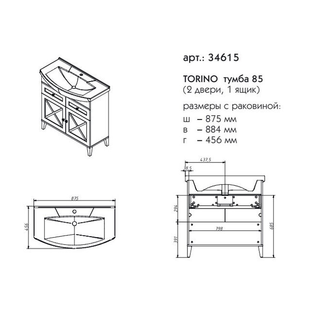 Тумба под раковину Caprigo 34615 Torino 85 см - цена 38480 руб. Оформить заказ и купить компонент Caprigo 34615 Torino 85 см в Москве в нашем интернет магазине можно по тел 8 (919) 991-95-00 или добавив товар в корзину.
