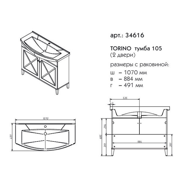 Тумба под раковину Caprigo 34616 Torino 105 см - цена 29800 руб. Оформить заказ и купить компонент Caprigo 34616 Torino 105 см в Москве в нашем интернет магазине можно по тел 8 (919) 991-95-00 или добавив товар в корзину.