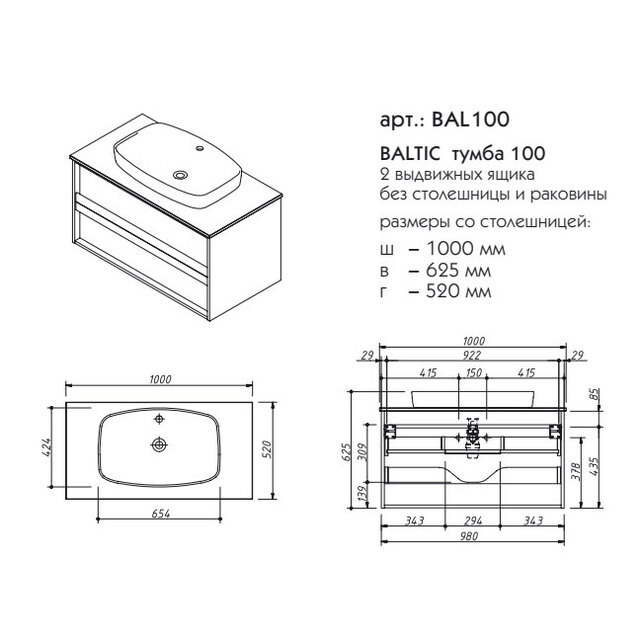 Тумба под раковину Caprigo BAL100 Baltic 100 см подвесная - цена 25650 руб. Оформить заказ и купить компонент Caprigo BAL100 Baltic 100 см подвесная в Москве в нашем интернет магазине можно по тел 8 (919) 991-95-00 или добавив товар в корзину.