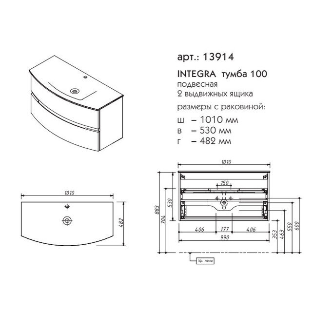 Тумба под раковину Caprigo 13914 Integra 100 см подвесная - цена 39965 руб. Оформить заказ и купить компонент Caprigo 13914 Integra 100 см подвесная в Москве в нашем интернет магазине можно по тел 8 (919) 991-95-00 или добавив товар в корзину.