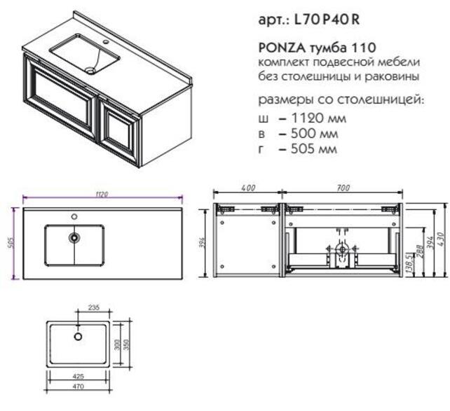 Тумба под раковину Caprigo L70.P40R Ponza 110 см подвесная - цена 69730 руб. Оформить заказ и купить компонент Caprigo L70.P40R Ponza 110 см подвесная в Москве в нашем интернет магазине можно по тел 8 (919) 991-95-00 или добавив товар в корзину.