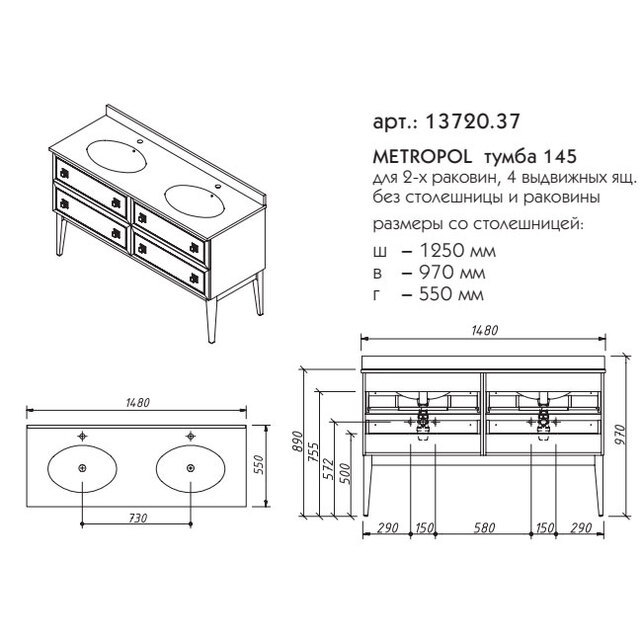 Тумба под раковину Caprigo 13720.37 Metropol 148 см - цена 115870 руб. Оформить заказ и купить компонент Caprigo 13720.37 Metropol 148 см в Москве в нашем интернет магазине можно по тел 8 (919) 991-95-00 или добавив товар в корзину.